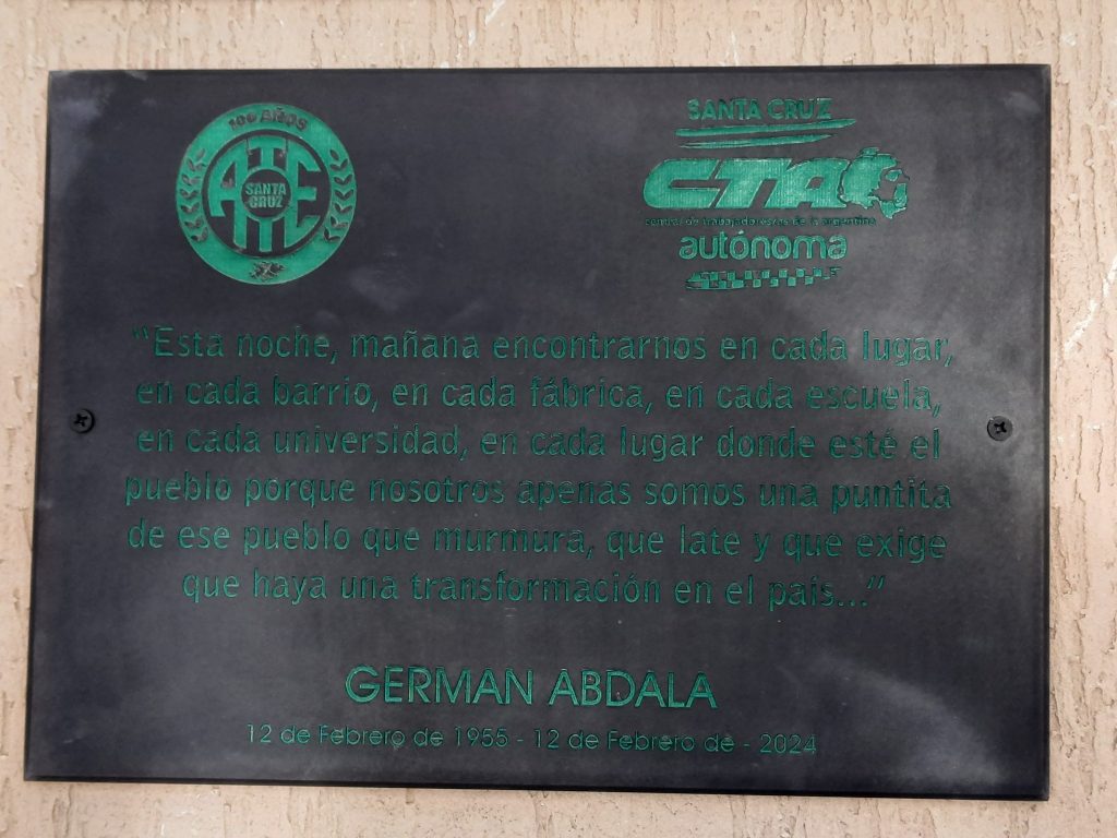 La ATE Santa Cruz y la Central de Trabajadores de la Argentina Autónoma participaron del acto homenaje a nuestro compañero Germán Abdala al cumplirse un nuevo aniversario de su natalicio.
