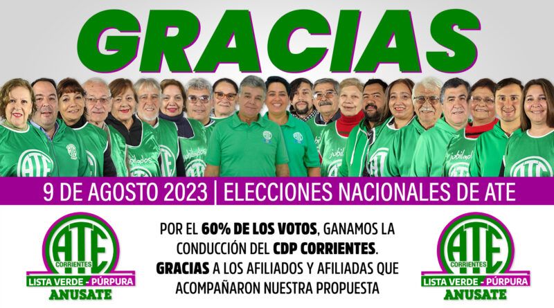 La lista Verde-Púrpura ANUSATE ganó ampliamente en Capital, Goya, Esquina, Santo Tomé, Virasoro, Ituzaingó, Bella Vista,...