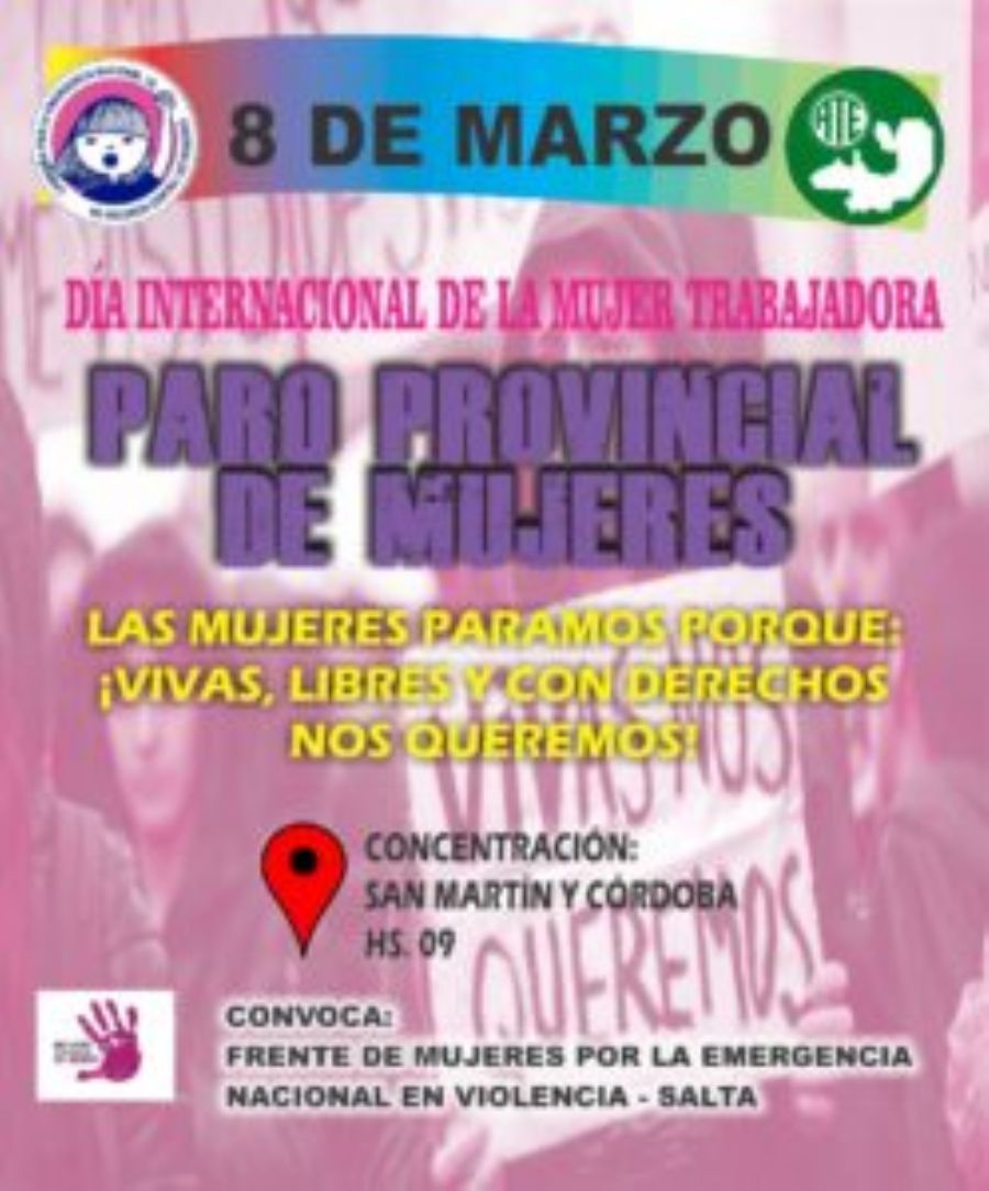 Será bajo la consigna "Las Mujeres paramos porque: ¡Vivas, libres y con Derechos nos queremos"