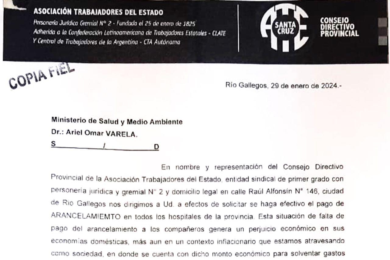 La Asociación Trabajadores del Estado de la Provincia de Santa Cruz presentó, por tercera vez, el pedido de apertura de ...