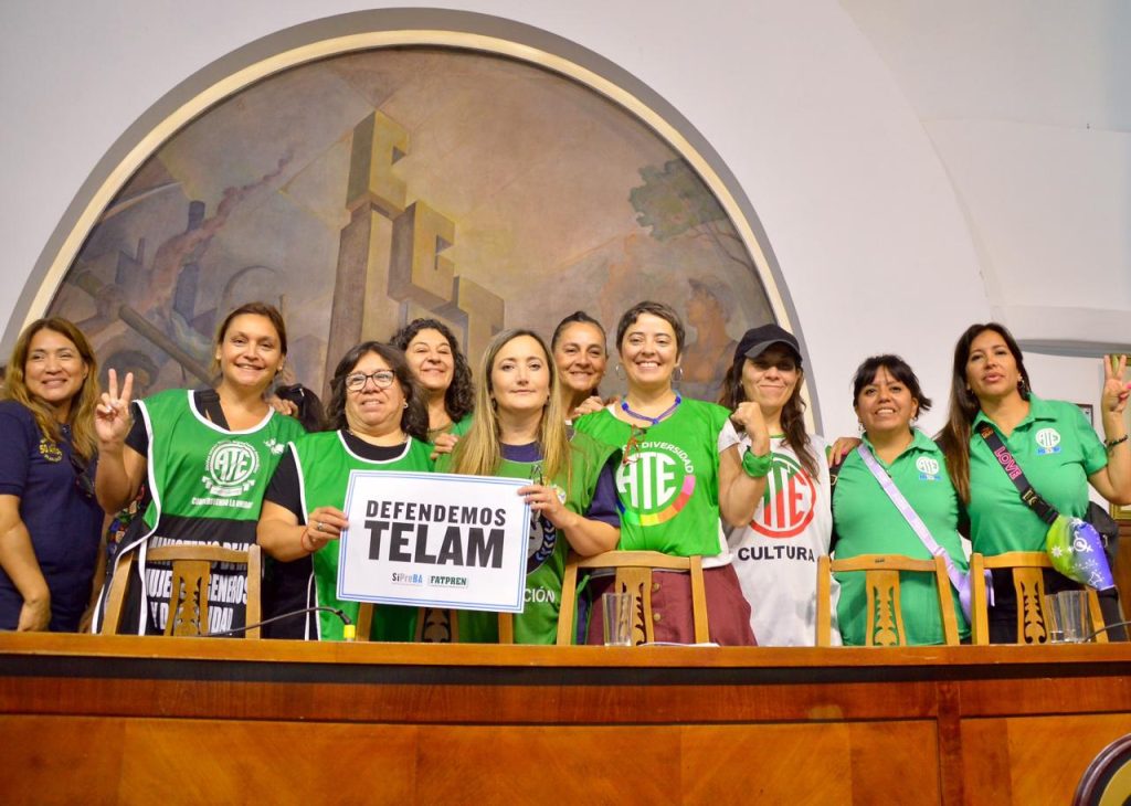 La conferencia culminó con contundente rechazo al cierre de la Agencia Nacional de Noticias Télam, a la venta del Banco Nación y en defensa de la educación pública y el sistema de jubilaciones y pensiones del Estado.