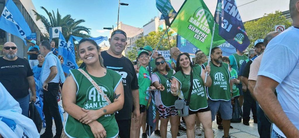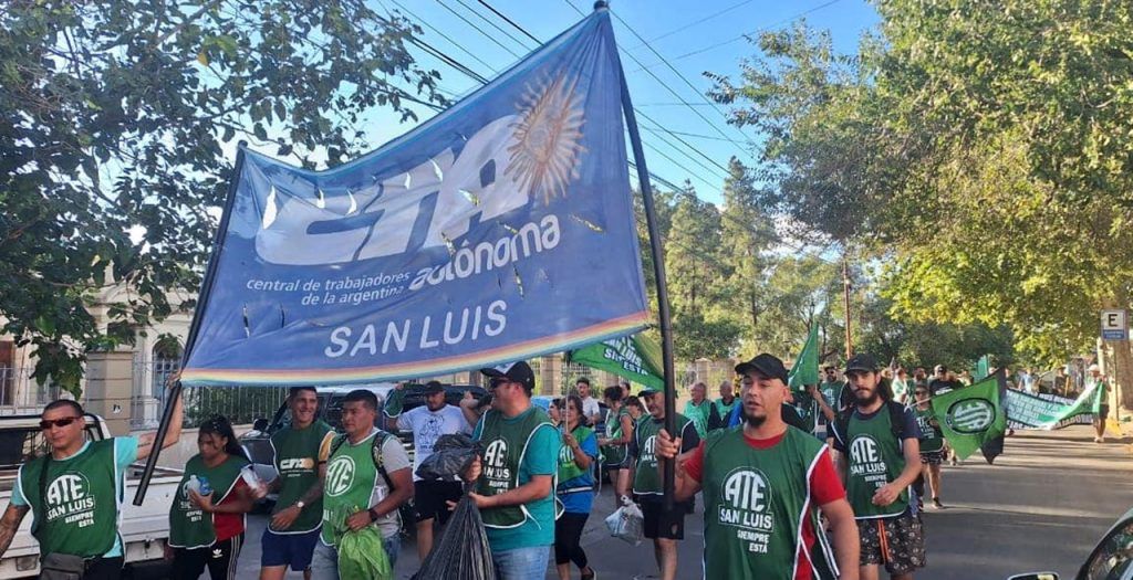 Desde ATE San Luis además reclamaron: “Nunca más salarios en cuotas, más recursos a municipios que aseguren salarios dignos, reincorporación de despedidos y despedidas, y aumento salarial en toda la provincia”.