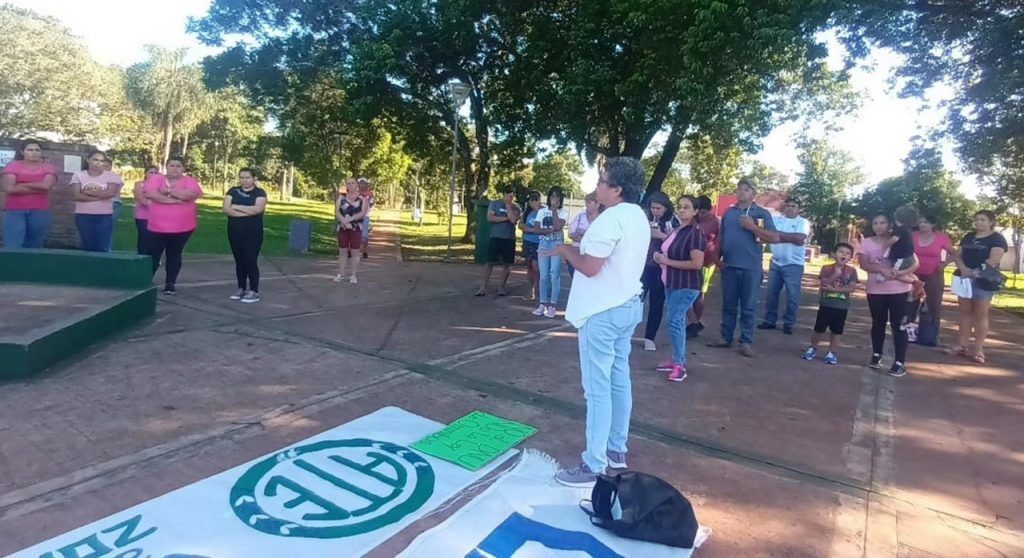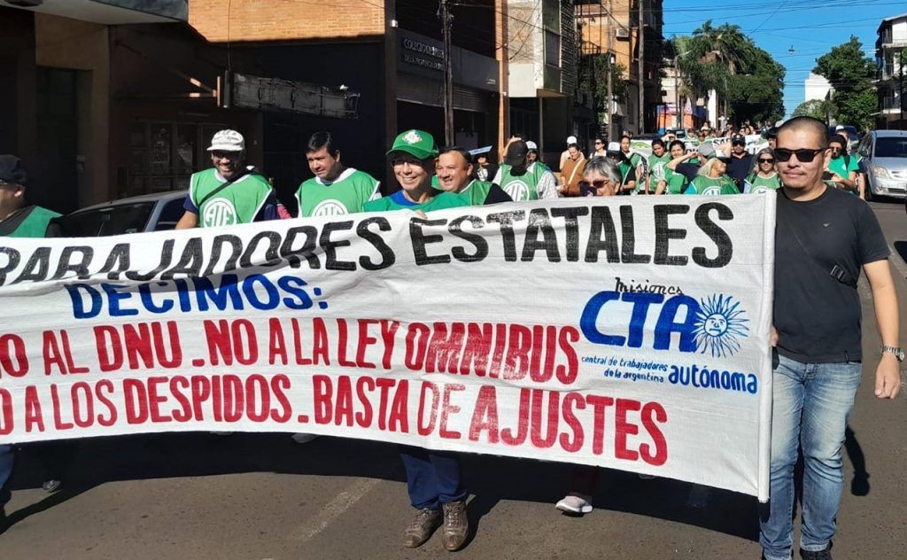 ATE Misiones se concentró en la Plaza 9 de Julio en adhesión al Paro Nacional de 24 horas en rechazo a los DNU 70/23 y 84/23 y al proyecto de Ley Ómnibus del Gobierno de Milei.