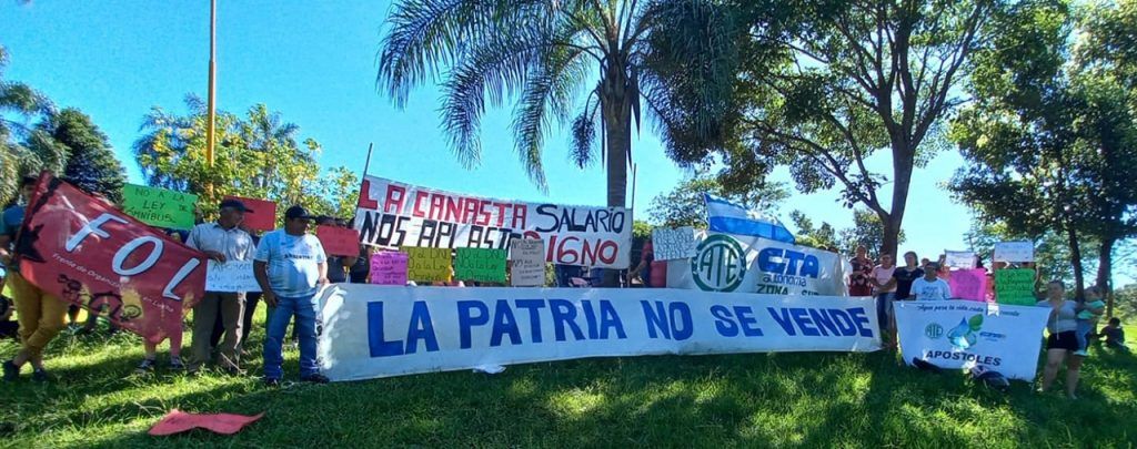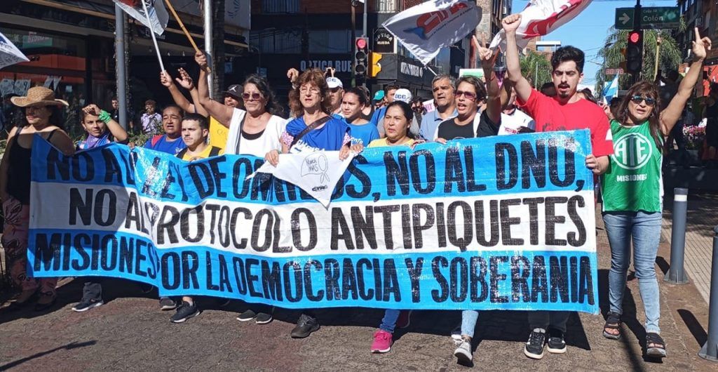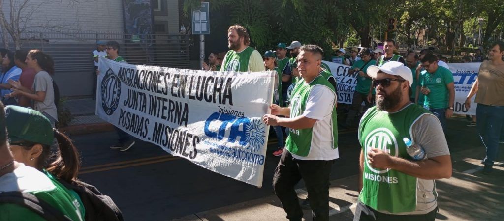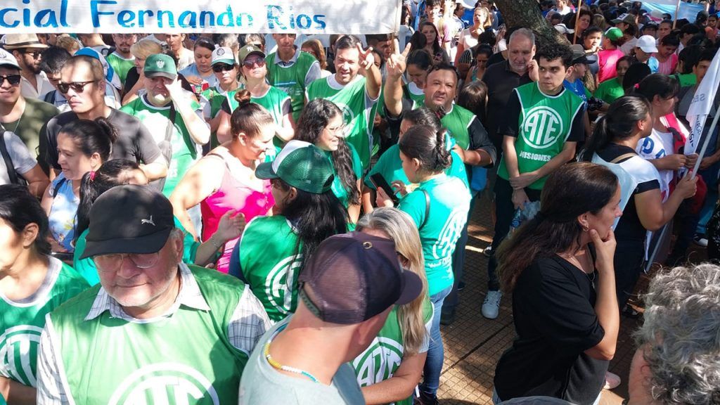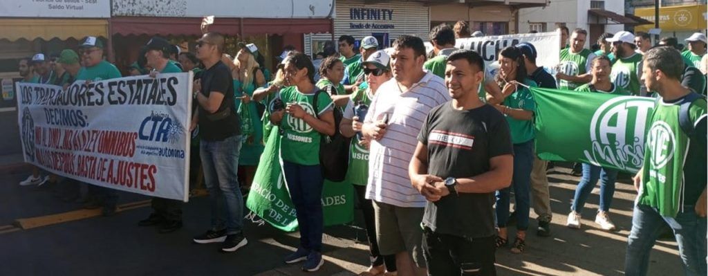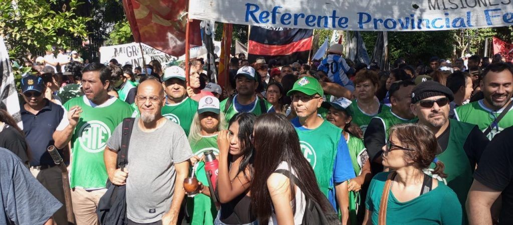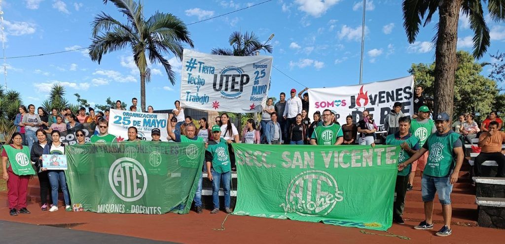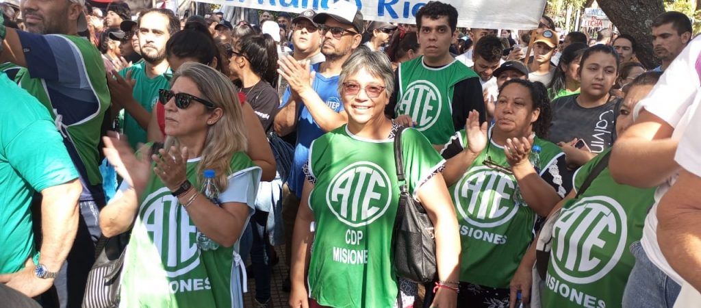 En el día de hoy, y en el marco del Paro y Movilización ratificado por el Consejo Directivo Nacional de ATE para todo el país, el Consejo Directivo Provincial de ATE Misiones, representado por la Secretaria General, Miriam López; el Secretario Adjunto, Norberto Godoy; el Secretario Administrativo, Marcelo Grasiadei; el Secretario de Finanzas, Juan Antúnez; el Secretario de Organización, Carlos Candia; la Secretaria de Salud y Seguridad Laboral, Mauricia Pedroso; la Secretaria de Comunicación, Graciela Borges y el Secretario de Acción Social, Raúl Ovelar; acompañados de vocales titulares, suplentes y compañeras y compañeros afiliados a la organización sindical, se hizo presente en la Plaza 9 de Julio de la ciudad de Posadas, junto a diversas organizaciones sociales y sindicales, a activistas auto convocados y a movimientos políticos, que se sumaron a los reclamos contra el desmantelamiento del Estado y a favor de la defensa de la soberanía nacional y de la Democracia.