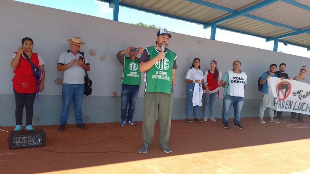 Javier ‘Colo’ Báez, Secretario General de la Seccional de ATE San Pedro, se dirigió a la multitud en el anfiteatro de la plaza central de la localidad misionera. Allí ratificó que “ATE está unido y más fuerte que nunca, con la convicción de defender a todos los trabajadores y trabajadoras del Estado”. Asimismo, planteó la necesidad de los pases a Planta Permanente y la estabilidad laboral, y reclamó por un inmediato cese de las políticas de ajustes, por la anulación del Protocolo Anti-Movilización, de los DNU 70/23 y 84/23, y por un contundente rechazo al proyecto de Ley Ómnibus.