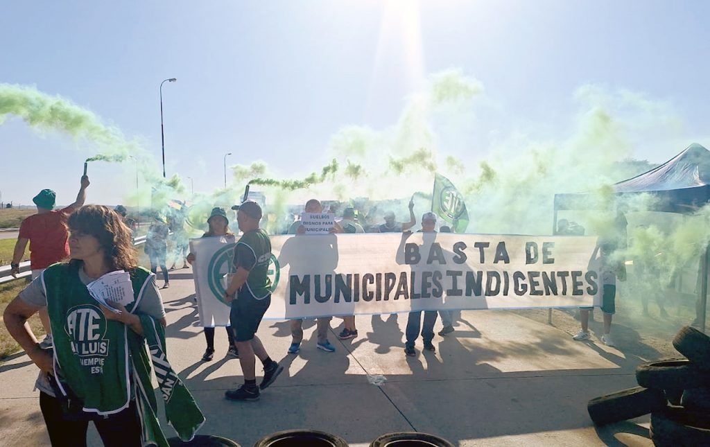 El Secretario General de ATE San Luis, Fernando Gatica, manifestó: “La jornada de lucha de ayer empezó a las 8:30 de la mañana en la ruta que pasa detrás de la Casa de Gobierno, que se llama Terrazas del Portezuelo, reclamándole al Gobierno Provincial que devuelva a los municipios de la provincia de San Luis los fondos que el gobierno anterior giraba a cada municipio para pagar salarios que estén por encima de la línea de la pobreza. Aparte de la coparticipación habitual que se mandaba a los municipios, se mandaba una partida extra solamente con la finalidad de que se pagara salario a los municipales por encima de la línea de la pobreza”.