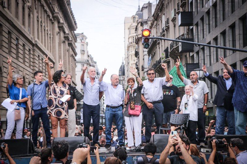 Taty Almeida reclamó: «en nombre de Madres de Plaza de Mayo Línea Fundadora y de los 13 organismos que integramos la mesa de organismos, estamos acá para decir basta de mafia judicial, basta con este partido judicial. Tenemos que apoyar con toda nuestra fuerza este juicio político a la corte Suprema. Tenemos que seguir sin bajar los brazos».