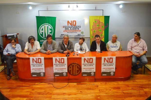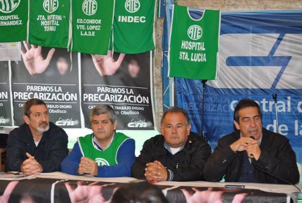 Víctor Mendivil de la Federación Judicial Argentina y Julio Fuentes, secretario general de ATE, dieron la bienvenida a l...