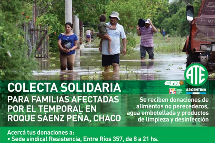 Acercá tus donaciones a la sede de ATE en Resistencia (Entre Ríos 357, de 8 a 21hs).