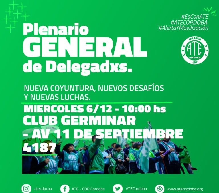 El secretario General de ATE Córdoba, Federico Giuliani, sostuvo que “necesitamos que cada cuerpo de delegados tenga her...
