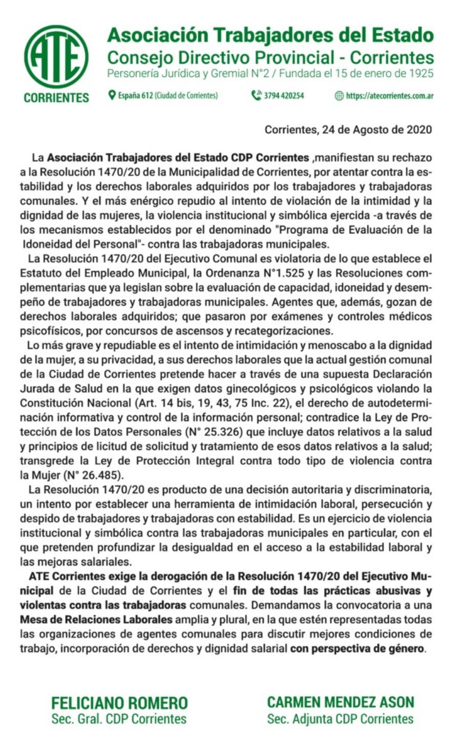 Estatales correntinos solicitan al gobierno provincial una solución urgente y transparencia en la designación de nuevos ...