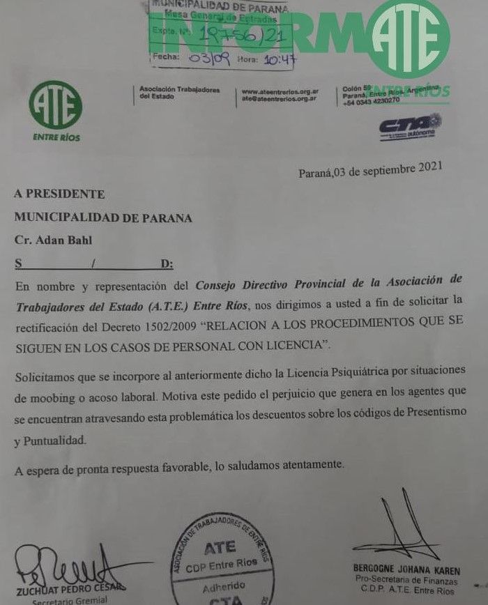 ATE rechazó la propuesta salarial del municipio de Paraná y presentará una contrapropuesta
