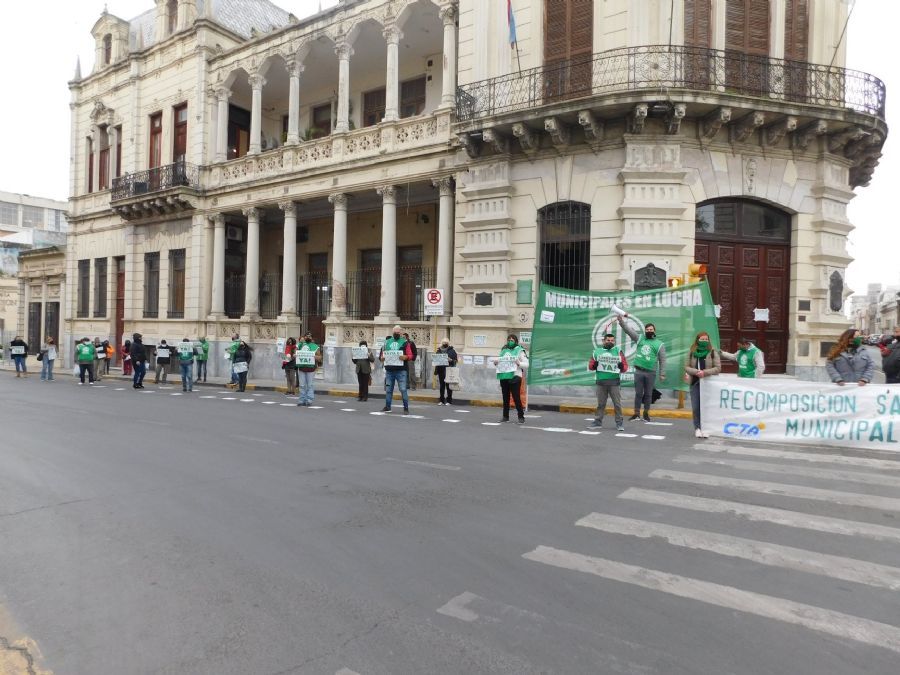 Fuerte reclamo de municipales de Paraná y de Auxiliares de Educación.