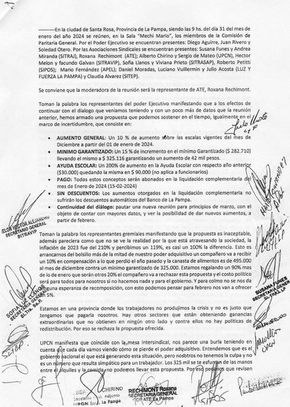 La intersindical reclama el recupero del 38% de aumento de noviembre diciembre del 2023 para poder cerrar esa pauta sal...