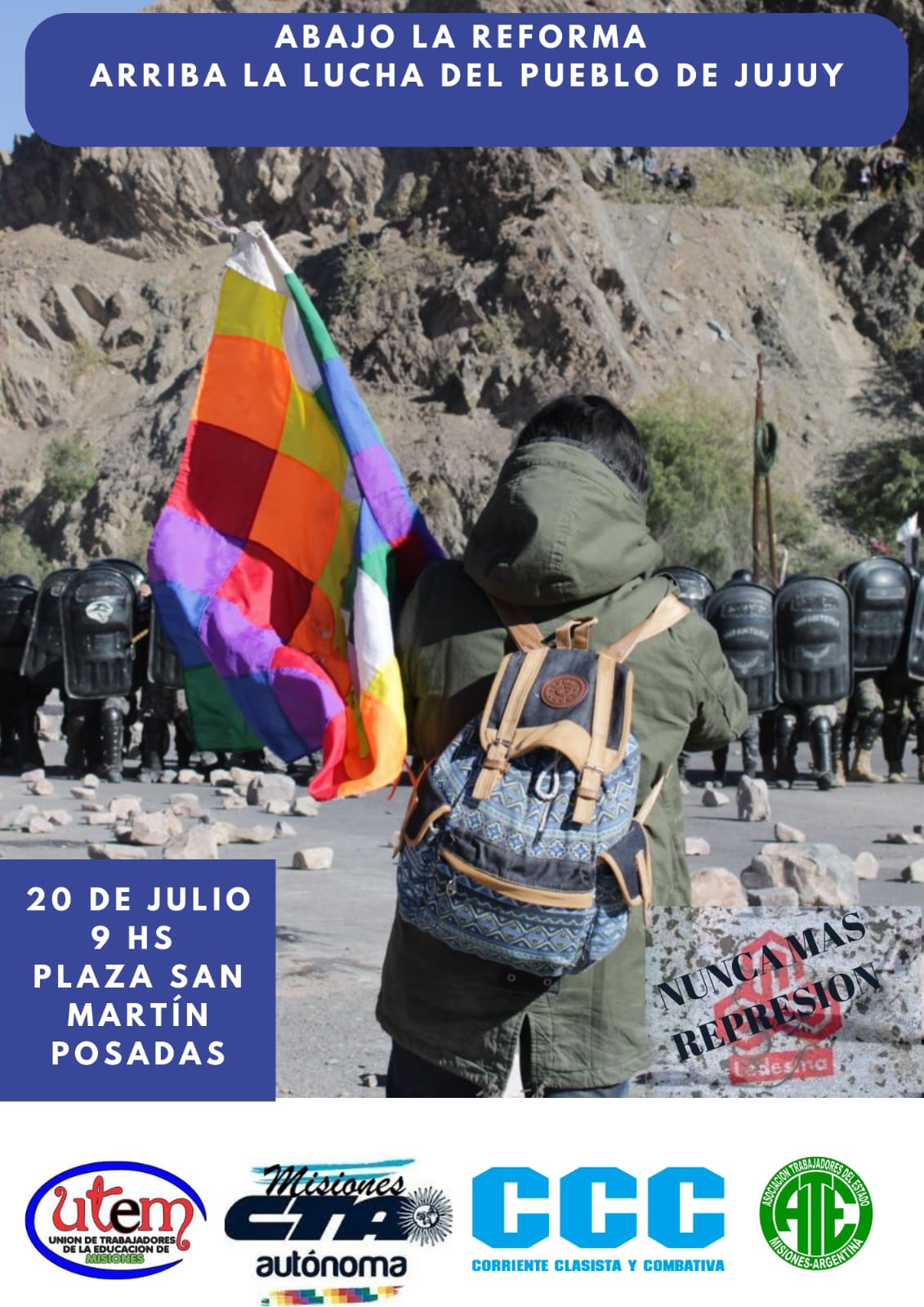 La CTA denuncia “las múltiples formas del avance represivo del Frente Renovador, desde la saturación policial ante la pr...