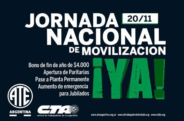 La Asociación Trabajadores del Estado convoca para mañana (29 de octubre) a las 15 hs. a movilizar, junto a la Central d...