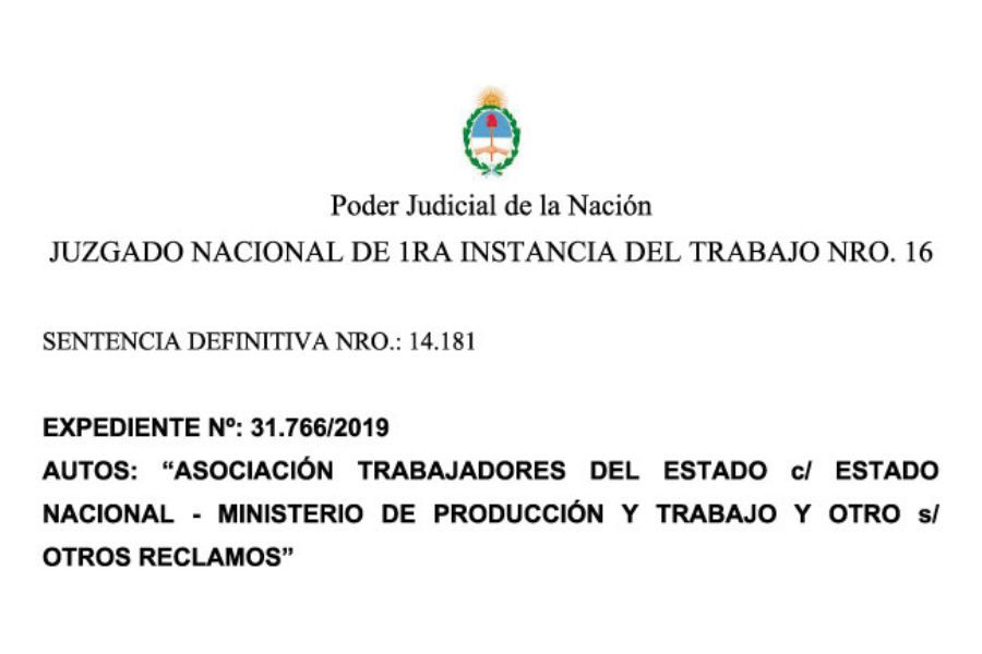 El Ministerio de Producción y Trabajo de la Nación convalidó la facultad del Consejo Directivo Nacional de ATE para crea...