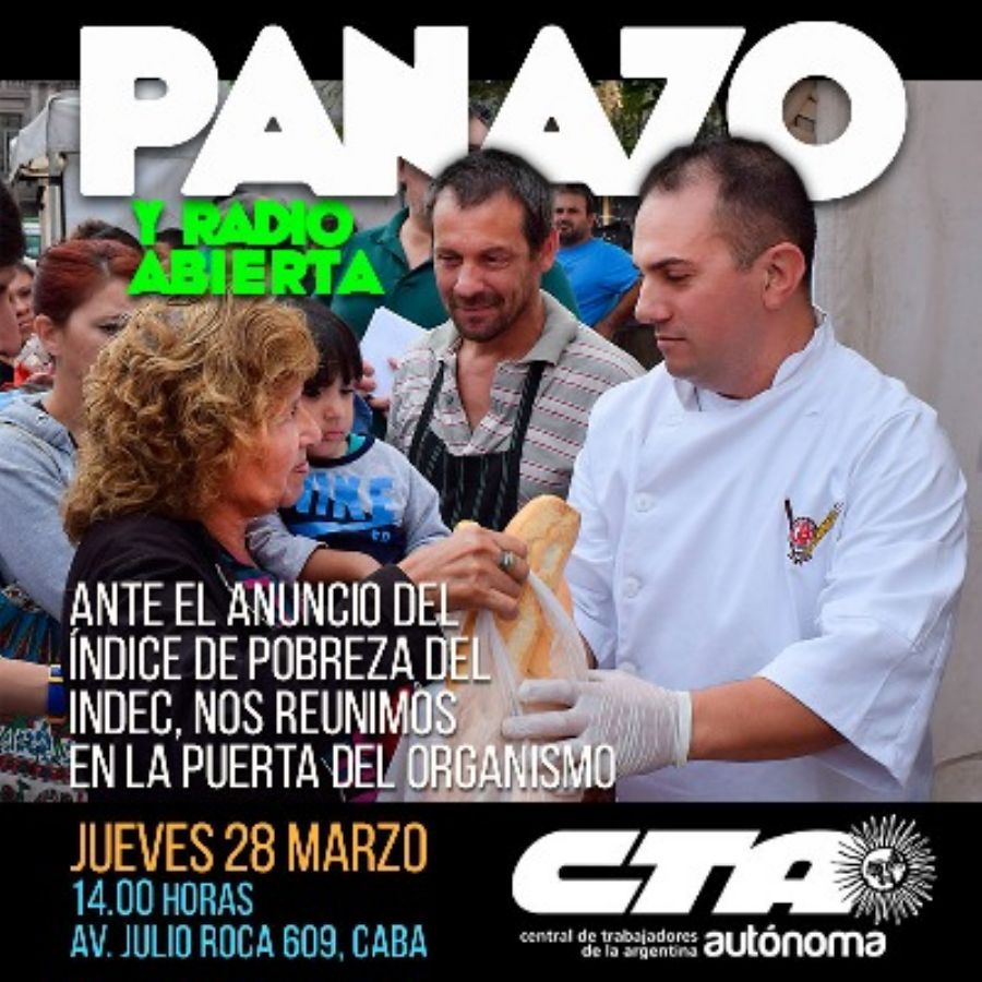 La Junta Interna de ATE-CTA-A del INDEC convocó para este jueves 28 la realización de un "Panazo" con radio ab...