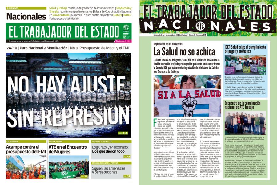 Ya está en circulación la edición de noviembre del periódico de ATE con el suplemento Nacionales.