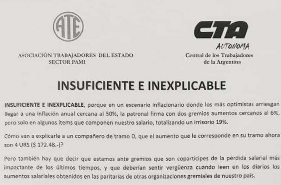 Con una inflación anual cercana al 50%, se acordó un aumento del 6%, totalizando un irrisorio 19%.