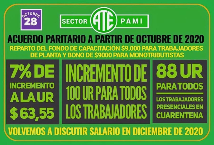 También se estableció que se pagará el bono a lxs compañerxs que están llevando a cabo tareas presenciales con el sueldo...