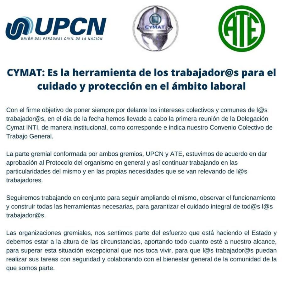 Para la ATE sectorial la CyMAT es el ámbito donde deben discutirse los protocolos.