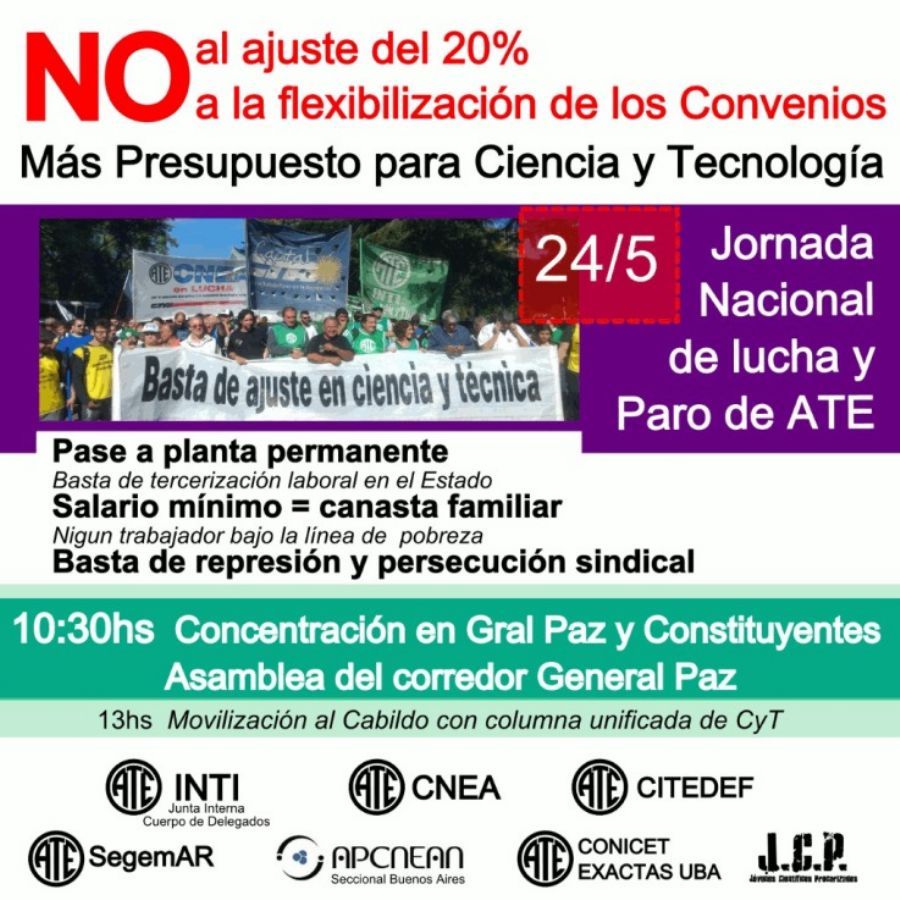 Mañana desde las 10.30hs en General Paz y Constituyentes. A las 13hs marcharán al Cabildo.