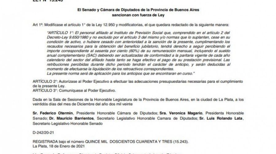 Fue publicada en el Boletín Oficial bajo el número 15.243. ATE destacó la medida pero señaló que lo fundamental: la efec...