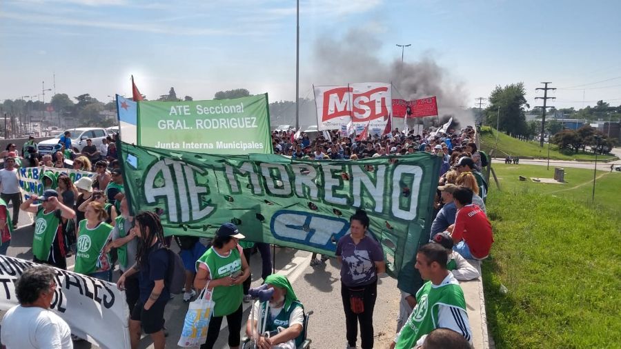 Lxs trabajadores de ATE movilizaron del Acceso Oeste hacia la Municipalidad para plantearle el reclamo al intendente Fes...