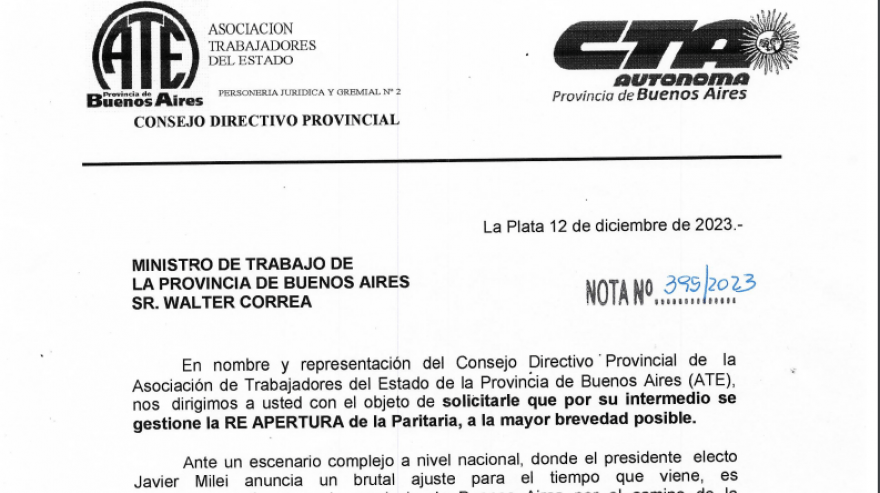 ATE señaló la necesidad de “reponer el poder adquisitivo de los salarios de los y las trabajadores estatales bonaerense...