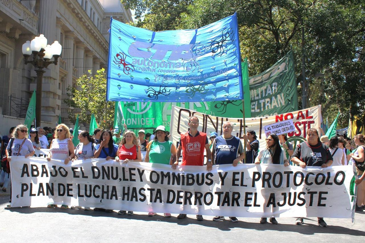 ATE Rosario y la CTA-A fueron parte de la multitud que salió a las calles a frenar las medidas del Gobierno Nacional. “L...