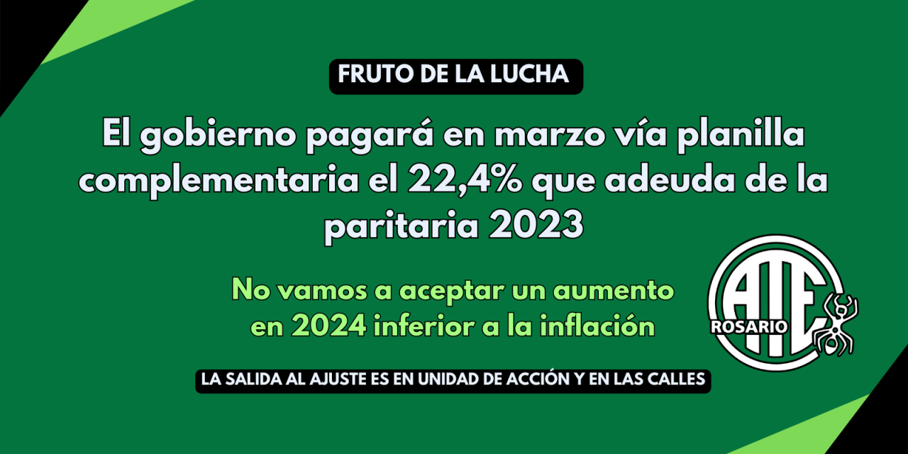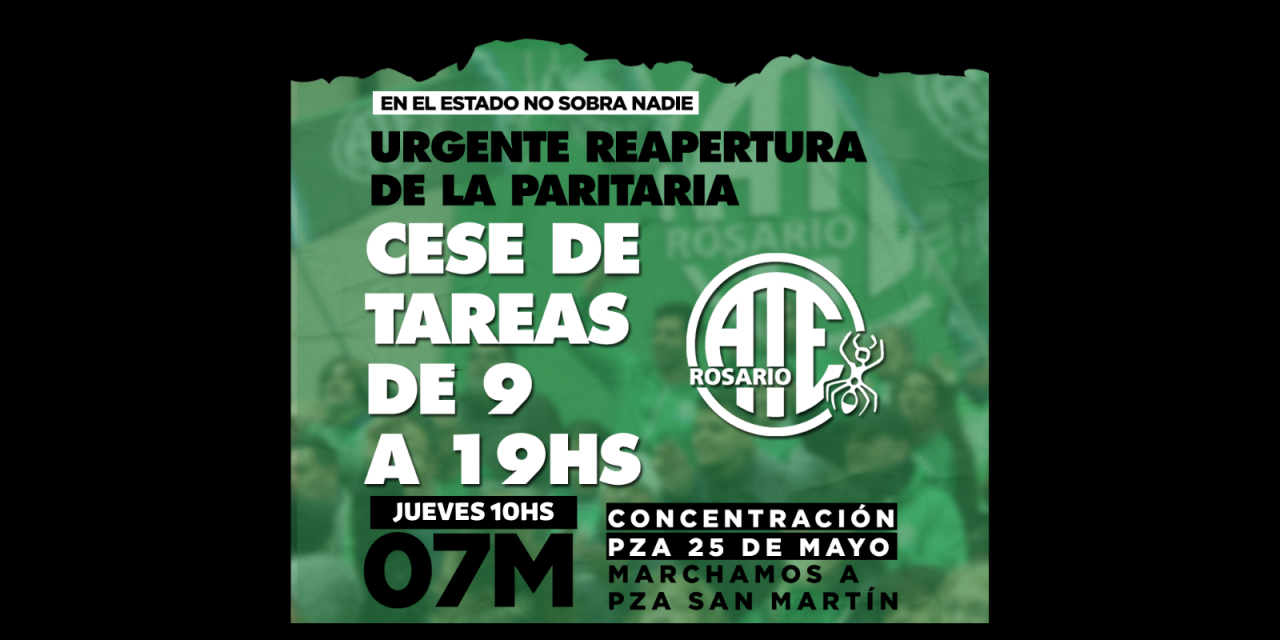 ATE Rosario exige el pago de la deuda salarial que tiene la provincia con lxs estatales santafesinos del 2023 (22%) y un...