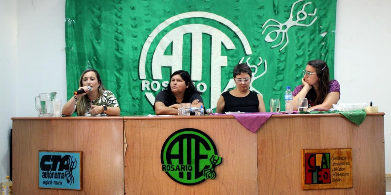 La jornada inició con un panel integrado por la secretaria general de ATE Rosario y la CTAA local, Lorena Almirón y la c...