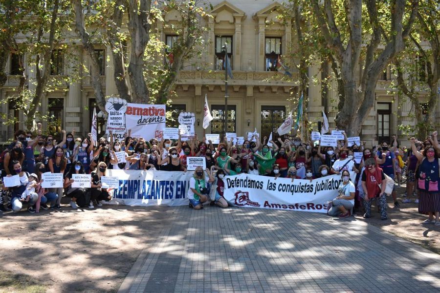 Delegadxs del sector nucleadxs en ATE Rosario concentraron frente a la sede de Gobernación en unidad con Amsafe Rosario.