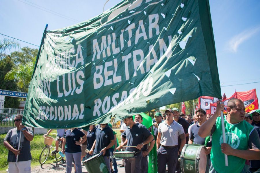 Tras el anuncio de los 35 despidos, trabajadores de Fábrica Militar Fray Luis Beltrán encabezaron un acto junto a todo e...
