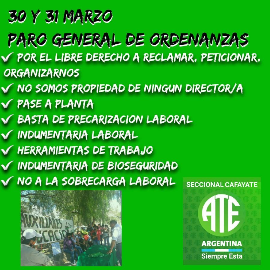 Será el 30 y 31 de marzo, en contra de la precarización laboral y solicitando al gobierno salteño indumentario y element...