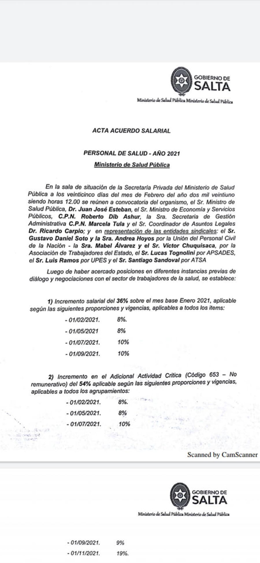 También piden incorporar el pedido de bono de 10.000 pesos como actividad crítica, aumento salarial 2021 del 35% y pase ...