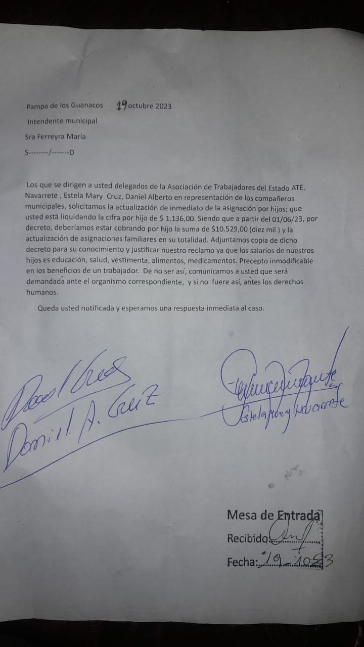 La ATE exige a la comuna el pago del aumento del 60% correspondiente al mes de mayo en el salario básico, entre otras co...