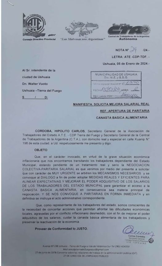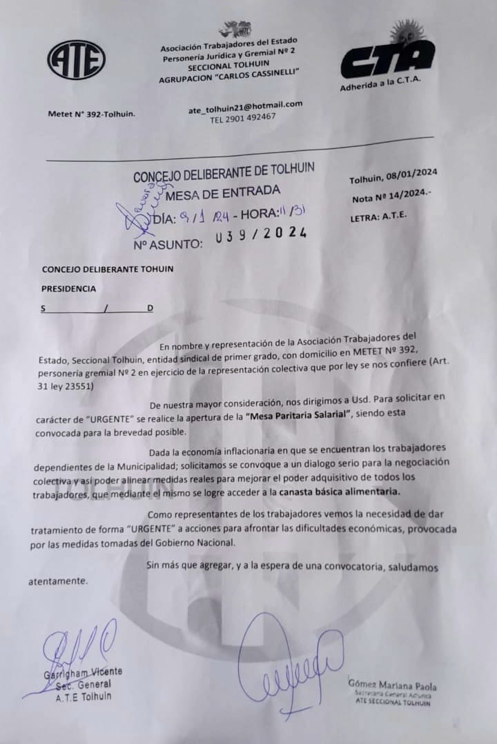 La ATE sostiene en su pedido “la necesidad inmediata de recuperar el poder adquisitivo de las y los trabajadores municip...