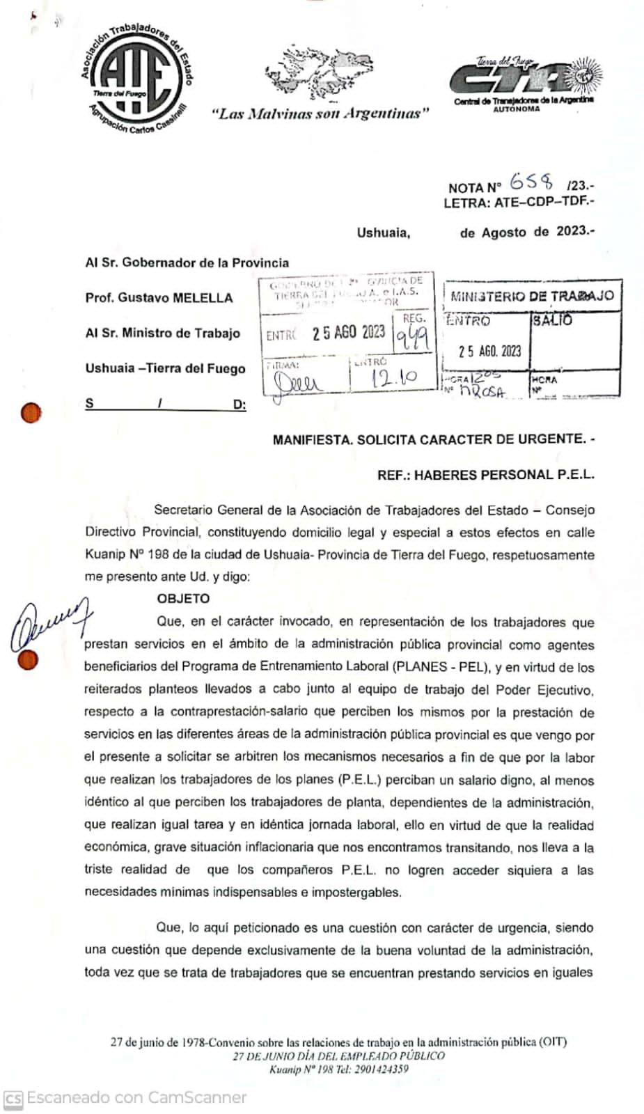 El CDP también pidió el tratamiento y finalización del CCT; el pase a planta de las y los compañeros de los planes PEL; ...