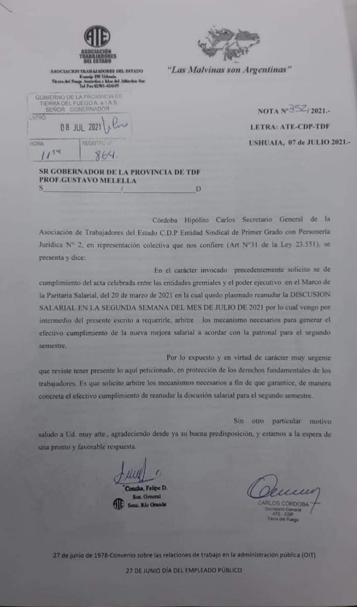 ATE pide que se cumpla con el acta firmada en marzo donde se fija la reapertura de negociaciones salariales para la segu...